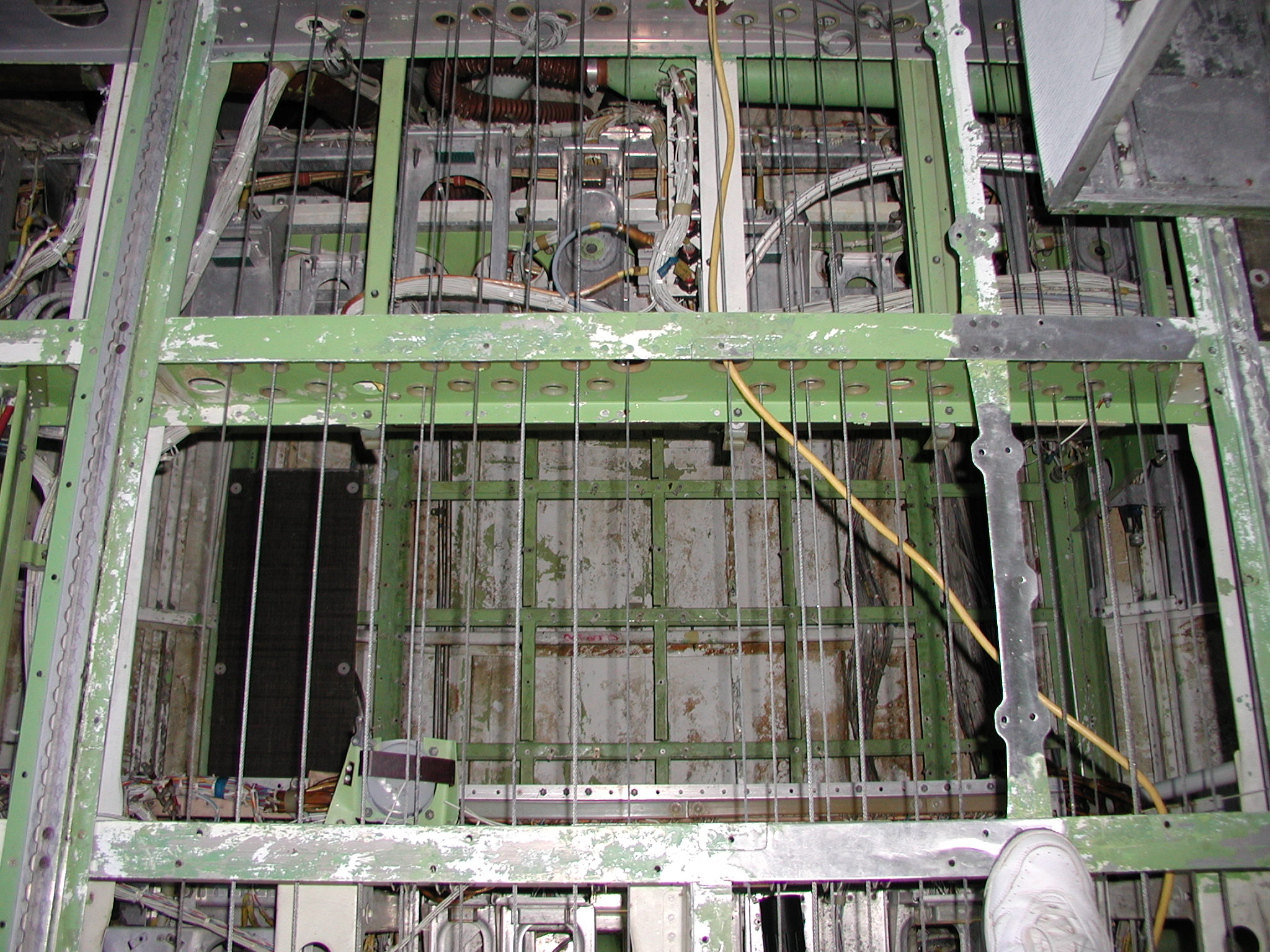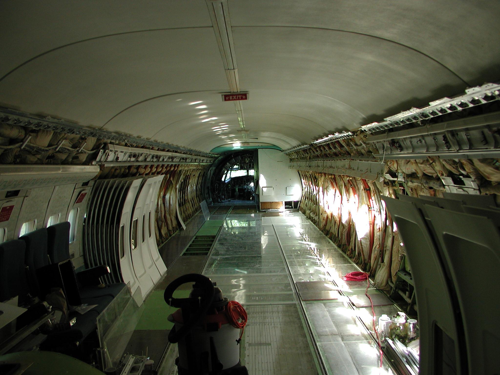 I've also been busting butt to clean the entire electronics bay and the front landing gear interior belly area. The belly area in the electronics bay was the home a large quantity of belly glop, which is now thoroughly gone, along with it's odor. I had to remove all the floor panels and insulation to get to it. Most of this cleaning is now complete (but not all). For this aircraft, it's been necessary to remove the lower insulation blankets (those from the floor line down) in some areas, including the entire electronics bay, in order to get the areas clean. (This might prove true for other retired airliners too.) In the electronics bay, most of the insulation blankets were in quite bad shape, providing little real insulation, they were filthy dirty, and they made genuine cleaning of the area impossible. So I removed them, and discarded the unserviceable and unrepairable ones, of which there were quite a few. I may have to reinsulate the area later (or perhaps not, but that's a complicated story), but what's important now is that the area is squeaky clean - you can move around and work in the area without soiling your hands or clothes, and there's no odor - it's quite nice.